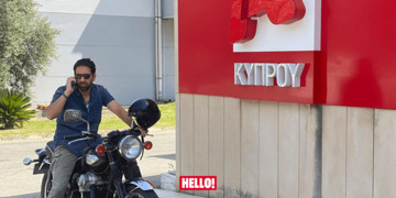 Ο φωτογραφικός φακός του HELLO! πέτυχε τον γνωστό ηθοποιό και σεναριογράφο κατά την άφιξή του με την μηχανή του, στις εγκαταστάσεις του τηλεοπτικού σταθμού για την υπογραφή των συμβολαίων και την σύναψη μιας νέας συμφωνίας στην τηλεοπτική ζωή του νησιού.