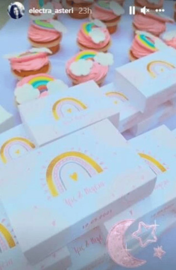 Η Ηλέκτρα Αστέρη δημοσίευσε φωτογραφία με τα γλυκά και τις μπομπονιέρες όπου πάνω ήταν γραμμένα τα ονόματα των νεοφώτιστων.