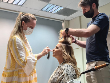 Το HELLO! τρύπωσε στα παρασκήνια και κατέγραψε τις πρώτες εικόνες αλλά και τις ετοιμασίες με τον hair stylist, Μιχάλη Ηλιάδη και την make up artist και blogger του HELLO! Ιlona G.