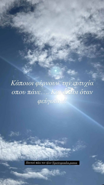 Σε μία πρόσφατη ανάρτησή του στο Instagram, ο Δημήτρης Αλεξάνδρου ανέβασε ένα μήνυμα που προκαλεί σκέψεις και συναισθήματα, αναφερόμενος στην ευτυχία που φέρνουν οι άνθρωποι στη ζωή μας. Όπως χαρακτηριστικά έγραψε: «Κάποιοι φέρνουν την ευτυχία όπου πάνε… και άλλοι, όταν φεύγουν».
