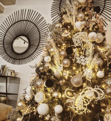 Ένα εντυπωσιακό δέντρο στόλισε η Άντρεα Κυριάκου στο σπίτι της, με χρυσά, κόκκινα και άσπρα στολίδια. Στην κορυφή του δέντρου η γνωστή Κύπρια ραδιοφωνική παραγωγός και influencer είπε να πρωτοτυπήσει και τοποθέτησε έναν σκούφο, αντί για το κλασσικό αστέρι.
