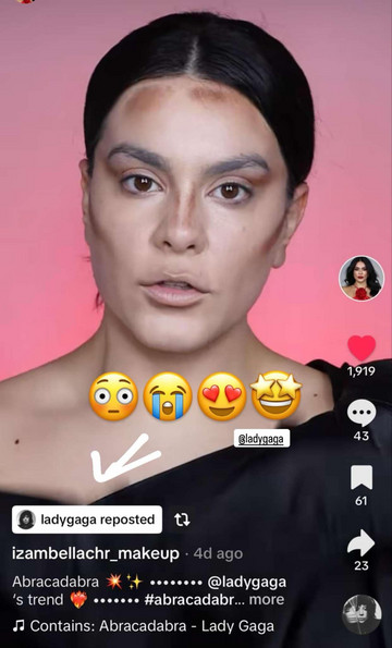 Η make up artist, Ιζαμπέλλα έκανε το Abrakatabra, με την Lady Gaga να το βλέπει και να το κάνει repost στο προφίλ της.