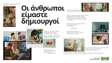 Η IKEA, με τη νέα της καμπάνια «Οι άνθρωποι είμαστε δημιουργοί» και την υπογραφή της The Newtons Laboratory, τοποθετεί στο επίκεντρο τον άνθρωπο και την εσωτερική του επιθυμία για δημιουργία. Ανάλογα με τον χαρακτήρα και την αρέσκειά μας γινόμαστε μάγειρες, ζωγράφοι, σύντροφοι, ποιητές, κωμικοί. Η έμφυτη ανάγκη των ανθρώπων για δημιουργία, τελικά γίνεται χάρισμα. Σε αυτήν την αλήθεια βασίζεται η νέα καμπάνια της IKEA, στην οποία αντικατοπτρίζεται και το νέο της εταιρικό αφήγημα: μαζί δημιουργούμε ατελείωτες δυνατότητες.