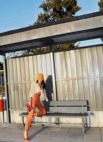 Δεν είναι ούτε πολύ δύσκολο.. απλά παίζεις με διαφορετικές υφές, στυλ αλλά και αποχρώσεις του χρώματος για να δώσεις ένα ενδιαφέρον αποτέλεσμα στο σύνολό σου! Προσθέτω τσάντα σε μπορντώ, που συνδυάζεται εξαιρετικά με το πορτοκαλί και voila! Τι σου λέει?