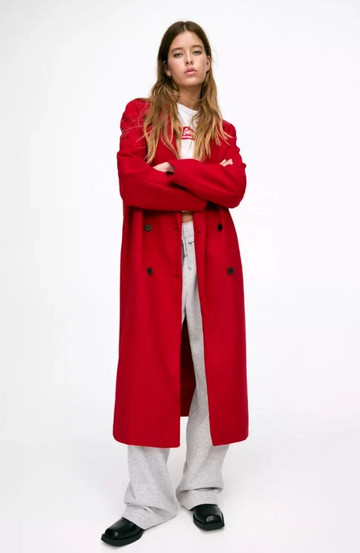 Αν ο προϋπολογισμός σου είναι πιο περιορισμένος, βρήκα αυτό το κόκκινο παλτό από την Pull & Bear που είναι ελαφρώς oversized και έχει πιο μοντέρνα εφαρμογή.