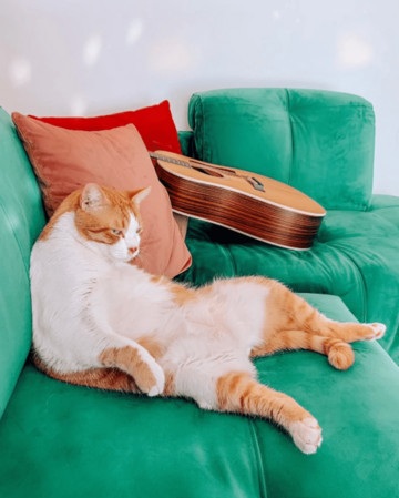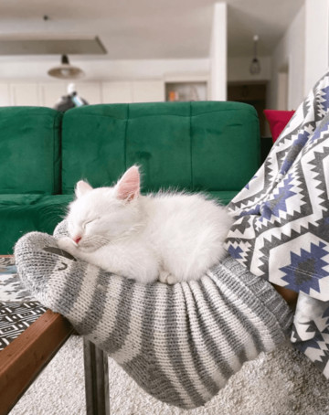 Το σπίτι της απολαμβάνουν και τα κατοικίδια της Μαίρης Συνατσάκη που δεν χάνουν την ευκαιρία να χαλαρώνουν στον αναπαυτικό καναπέ της.