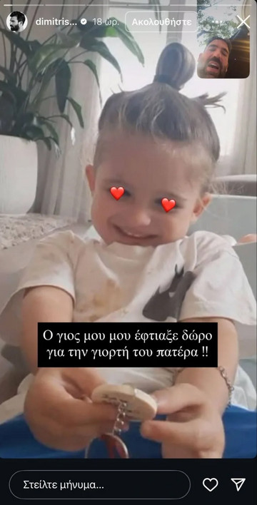 Στο story βλέπουμε τον μικρούλη να κρατά το δώρο του με καμάρι, ενώ ο Αλεξάνδρου σχολιάζει: «Ο γιος μου μου έφτιαξε δώρο για τη γιορτή του πατέρα!!»