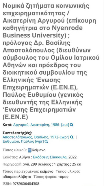 Η Κατερίνα Αργυρού, αδελφή του δημοφιλούς τραγουδιστή, απέσπασε μια σπουδαία διάκριση: το βιβλίο της με τίτλο «Νομικά Ζητήματα Κοινωνικής Επιχειρηματικότητας» συμπεριλήφθηκε στην Εθνική Βιβλιοθήκη της Ελλάδας, μια τιμή που επιβραβεύει την ερευνητική της προσπάθεια.