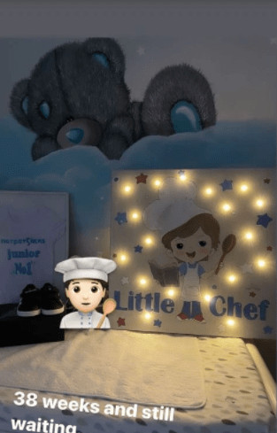 Μάλιστα, έδειξε στους followers του το παιδικό δωμάτιο του μωρού, στο οποίο κυριαρχεί το γαλάζιο χρώμα. Επάνω στην κούνια του διακρίνουμε έναν πίνακα με μία ζωγραφιά που απεικονίζει έναν μικρό σεφ, ενώ λίγο πιο δίπλα βλέπουμε ένα μωρουδιακό φορμάκι στο οποίο αναγράφεται: «Πετρετζίκης junior No 1».
