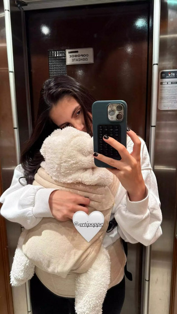 Στη νέα φωτογραφία που δημοσίευσε η Αλεξάνδρα Νίκα στο Instagram την βλέπουμε να ποζάρει στο ασανσέρ, έχοντας αγκαλιά τον μικρό Βασίλη Αργυρό, ο οποίος βρίσκεται πάνω στην μαμά του σε μάρσιππο.