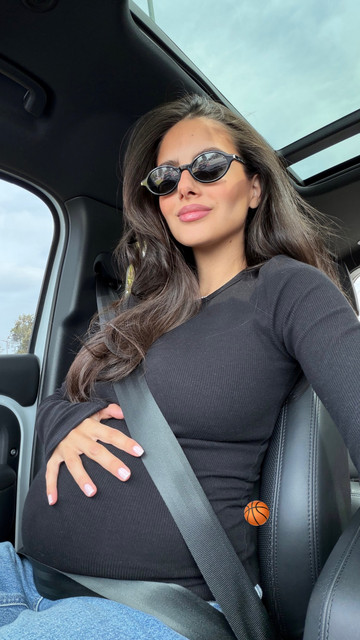Η σύζυγος του Κωνσταντίνου Αργυρού φωτογραφήθηκε, ενώ βρισκόταν μέσα στο αυτοκίνητο, φορώντας μία μαύρη μπλούζα και γυαλιά ηλίου, και ακουμπώντας το χέρι της στη φουσκωμένη της κοιλιά.