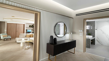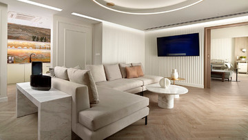 Στην κορυφή αυτής της εμπειρίας βρίσκεται η Προεδρική Σουίτα, ένας χώρος περίπου 90 τετραγωνικών μέτρων που λειτουργεί σχεδόν σαν αυτόνομο διαμέρισμα. Με δύο ξεχωριστές εισόδους, σαλόνι, γραφείο, κουζίνα και δύο μπάνια, προσφέρει απόλυτη ανεξαρτησία, ενώ ο εξοπλισμός της –από υπολογιστή μέχρι πλήρες σύστημα ψυχαγωγίας– καλύπτει κάθε πιθανή ανάγκη. Πρόκειται για μια επιλογή που απευθύνεται σε όσους θέλουν το μέγιστο επίπεδο άνεσης και ιδιωτικότητας. Οι υπόλοιπες σουίτες του ορόφου κινούνται στην ίδια φιλοσοφία, προσφέροντας ευελιξία στη διαμόρφωση των χώρων και διατηρώντας υψηλό επίπεδο εξοπλισμού και παροχών. Ακόμη και τα μονόκλινα δωμάτια, αν και πιο «συγκρατημένα», διατηρούν την premium αισθητική και λειτουργικότητα, επιβεβαιώνοντας ότι ολόκληρος ο όροφος έχει σχεδιαστεί με ενιαία λογική.