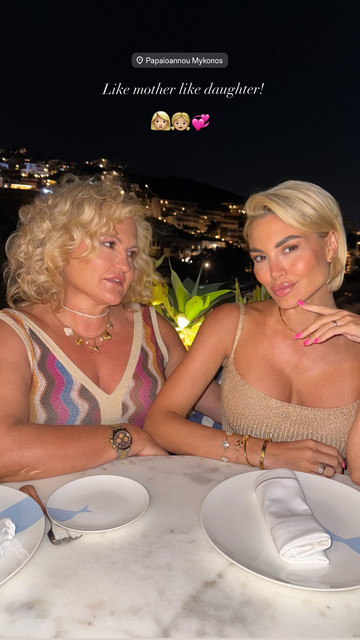 Μετά τις ρομαντικές της διακοπές στο Ιόνιο με τον σύντροφό της, η Αλεξάνδρα Παναγιώταρου συνεχίζει το καλοκαιρινό της tour στη Μύκονο, αυτή τη φορά, με τη μητέρα της.
