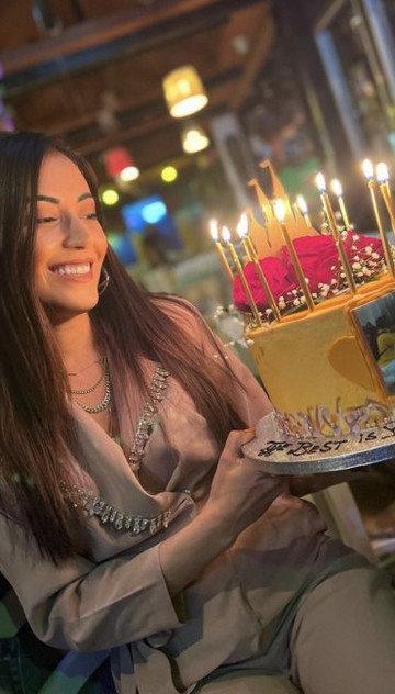 Η ίδια επέλεξε να γιορτάσει τα γενέθλια της σε σε μεξικάνικο εστιατόριο της Αγίας Νάπας την Τετάρτη το βράδι και ο αγαπημένος της Άλκης εμφανίστηκε με μια ιδιαίτερα τούρτα με κόκκινα τριαντάφυλλα στην κορυφή και στο πλάι μια φωτογραφία από τη στιγμή που της έκανε πρόταση γάμου στη Disneyland.