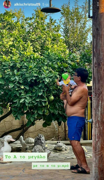 Το απόγευμα της Δευτέρας, μέσα από τον προσωπικό του λογαριασμό στο Instagram, ο Άλκης δημοσίευσε μια τρυφερή φωτογραφία από τον κήπο του σπιτιού τους, με τον πατέρα του να κρατάει στην αγκαλιά του τον μικρό Ανδρέα, σε μια σπάνια στιγμή μεταξύ παππού και εγγονού.