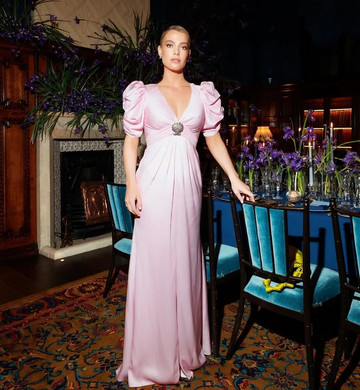 Η Αμέλια Σπένσερ τράβηξε τα βλέμματα στο Palazzo Eventi Privé Dinner, επιλέγοντας μια ρομαντική ροζ σατέν τουαλέτα από το brand, Temperley London που ανέδειξε την αβίαστη κομψότητά της. Το φόρεμα, δημιουργούσε μια εντυπωσιακή σιλουέτα, ενώ η επιλογή των αξεσουάρ παρέμεινε διακριτική, με κοσμήματα που πρόσφεραν μια λάμψη χωρίς να υπερβάλουν.