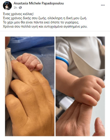 “Ένας χρόνος κιόλας! Ένας χρόνος δικής σου ζωής, ολόκληρη η δική μου ζωή. Το χέρι μου θα είναι πάντα εκεί όποτε το γυρέψεις. Χρόνια σου πολλά υγιή και ευτυχισμένα αγαπημένε μου”