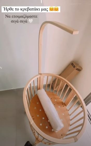 Το πρώτο πράγμα που μπήκε στο δωμάτιου του μικρού είναι μια στρογγυλή ξύλινη κούνια. Το στιγμιότυπο μοιράστηκε η ίδια η Ανδρεάνα γράφοντας στη λεζάντα Ήρθε το κρεβατάκι μας. «Να ετοιμαζόμαστε σιγά σιγά».