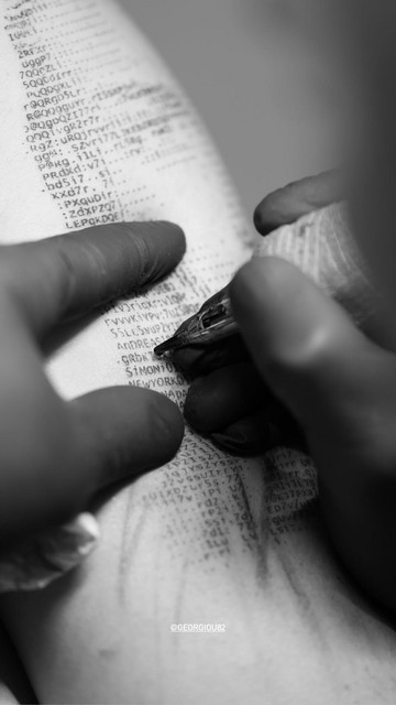 Το τατουάζ σχηματίζει το πρόσωπο της συζύγου του, Σιμώνης Χριστοδούλου, μέσα από λέξεις, σύμβολα και λεπτομέρειες που μοιάζουν να αφηγούνται στιγμές ζωής.