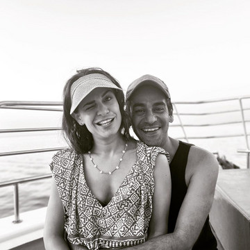 Μια ανάλογη φωτογραφία μοιράστηκε και χθες, 1/8 με τη σύζυγό του, Νατάσα Σχίζα. Οι δύο τους πόζαραν αγκαλιασμένοι στο κατάστρωμα ενός πλοίου από εκδρομή τους στο Blue Lagoon στην Πάφο.