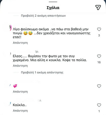 Τα αρνητικά σχόλια κάτω από την ανάρτηση της Αγγελικής Ηλιάδη