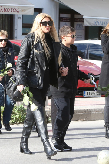 Η Αγγελική Ηλιάδη, η αγαπημένη εγγονή της Καίτης Γκρέυ, έφτασε στο κοιμητήριο της Νέας Σμύρνης για την κηδεία της «βασίλισσας» του λαϊκού τραγουδιού, μαζί με τον 11χρονο γιο της.