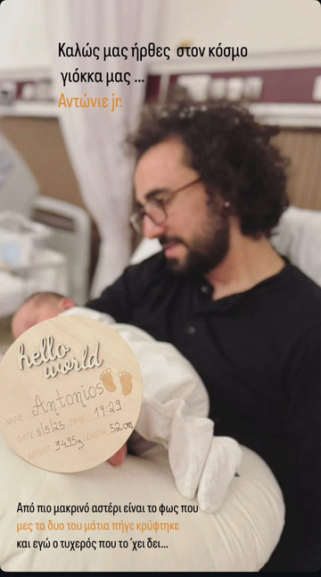 Ο Άγγελος Αυγουστή κοινοποίησε την πρώτη φωτογραφία με τον γιο του στον προσωπικό του λογαριασμό στο Instagram, γράφοντας: «Καλώς μας ήρθες στον κόσμο, γιόκκα μας. Αντώνιε jr»