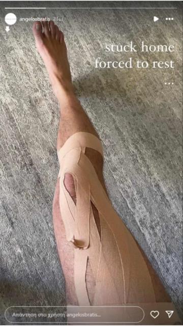 Στη φωτογραφία που έβαλε, το μόνο που βλέπουμε και μπορούμε να καταλάβουμε είναι το αντιμετωπίζει πρόβλημα με το πόδι του, αφού βλέπουμε να είναι δεμένο με tapes στην περιοχή γύρω από το γόνατο του.