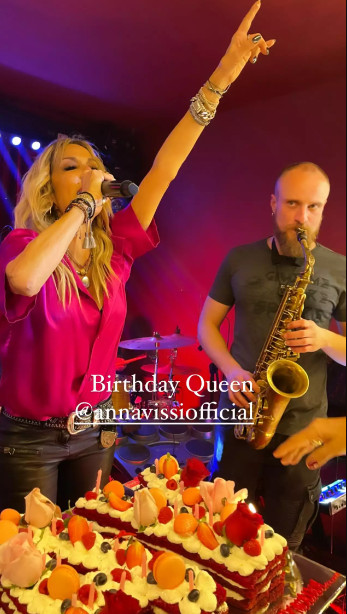 Η Άννα Βίσση ήταν άκρως ευδιάθετη στο πάρτι της, που είχε χορό, τραγούδι και ξέφρενες στιγμές αλλά και καραόκε! Μάλιστα, όταν ήρθε η στιγμή να σβήσει τα κεράκια της τεράστιας red velvet τούρτας της, γεμάτη λουλούδια, προσπάθησε να τη σηκώσει αλλά δυσκολεύτηκε! Η αγαπημένη τραγουδίστρια έγινε σήμερα 65 ετών.