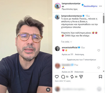 «Μετά ο κιθαρίστας, που αποχώρησε και ευχαρίστησε όλους εκτός από την ίδια τη Βίσση. Μου κάνει “Πάμε να καπηλευτούμε, να χτυπήσουμε την Άννα Βίσση σε μία από τις μεγάλες της στιγμές”. Μου κάνει λίγο ύποπτο. Εμένα μόνο;», ανέφερε ο Λάμπρος Κωνσταντάρας σε βίντεο στον προσωπικό του λογαριασμό στο Instagram.