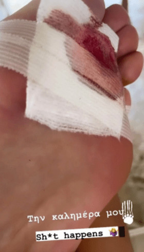 Μπορεί να μην αποκάλυψε τι ακριβώς συνέβη, αλλά αν κρίνουμε από την φωτογραφία, η Ανθή Σαλαγκούδη μάλλον πάτησε κάτι με αποτέλεσμα να τραυματιστεί.