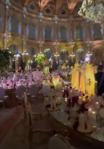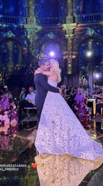 Επαγγελματίες τραγουδιστές και χορευτές ντυμένοι με κοστούμια εμπνευσμένα από παραμύθια, δημιούργησαν μια μαγική ατμόσφαιρα. Το ζευγάρι εισήλθε στον χώρο υπό τους ήχους του τραγουδιού “Beautiful Things”, ενώ για τον πρώτο τους χορό επέλεξαν το γαλλικό τραγούδι “Caruso”.