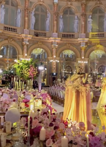 Οι καλεσμένοι απόλαυσαν ένα αξέχαστο δείπνο με χορό, που πραγματοποιήθηκε στο Opera Ballroom του Intercontinental Paris – Le Grand, το οποίο ήταν διακοσμημένο με πανέμορφα πολύχρωμα λουλούδια. Το πρόγραμμα ψυχαγωγίας, επιμελημένο από τον φημισμένο Gabriele Rizzi Lab, εντυπωσίασε τους παρευρισκόμενους.