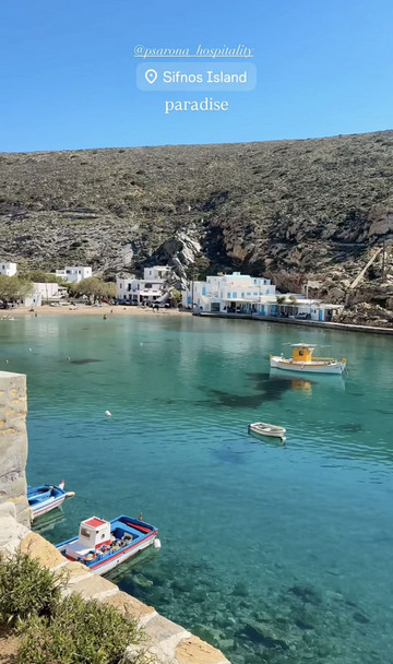 Στα instastories που μοιράστηκε, βλέπουμε την ίδια και την παρέα της τόσο στο αεροδρόμιο όσο και σε εξορμήσεις τους σε παραλίες της Σίφνου.