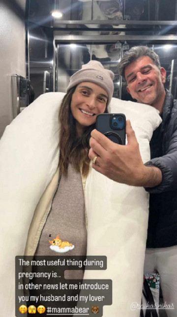 Η ηθοποιός, δημοσίευσε μια φωτογραφία με τον σύντροφό της στον καθρέφτη ενός ανσανσέρ, γράφοντας χαρακτηριστικά: Το πιο όμορφο πράγμα κατά τη διάρκεια της εγκυμοσύνης είναι… Σε άλλα νέα να σας συστήσω τον σύζυγο και έρωτα μου.
