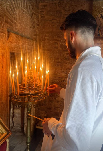 Μάλιστα, δεν παρέλειψαν να επισκεφθούν και ένα μικρό εκκλησάκι, όπου άναψαν ένα κερί.