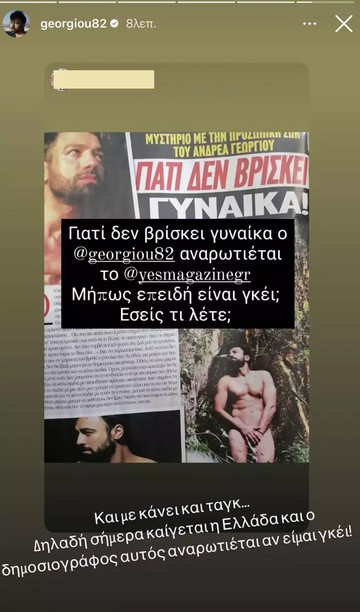 Το βράδυ της Τρίτης 22/8 ο Αντρέας Γεωργίου, ανέβασε το story από το δημοσίευμα που αναφέρει και έγραψε: «Και με κάνει και ταγκ! Δηλαδή σήμερα καίγεται η Ελλάδα και ο δημοσιογράφος αυτός αναρωτιέται αν είμαι γκέι».