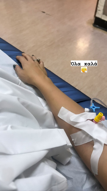 Συγκεκριμένα, η δημοφιλής παρουσιάστρια μας έδειξε μία φωτογραφία από το νοσοκομείο και την ίδια να της έχει χορηγηθεί ορός.