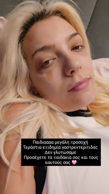 Χαρακτηριστικά αναφέρει: «Παιδιά μεγάλη προσοχή! Τεράστια επιδημία γαστρεντερίτιδας, δεν γλυτώσαμε. Προσέχετε τα παιδάκια σας και τους εαυτούς σας»!