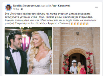 Γενέθλια έχει σήμερα η Άντρη Καραντώνη και ο σύζυγός της, Νεοκλής Σκουρουμούνης δεν θα μπορούσε να μην μοιραστεί δημόσια τις ευχές του!