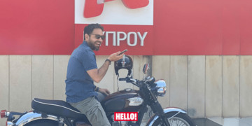 Ο φωτογραφικός φακός του HELLO! πέτυχε τον γνωστό ηθοποιό και σεναριογράφο κατά την άφιξή του με την μηχανή του, στις εγκαταστάσεις του τηλεοπτικού σταθμού για την υπογραφή των συμβολαίων και την σύναψη μιας νέας συμφωνίας στην τηλεοπτική ζωή του νησιού.