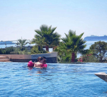 Οι δυο τους, ποζάρουν αγκαλιά στη πισίνα και απολαμβάνουν τη θέα!