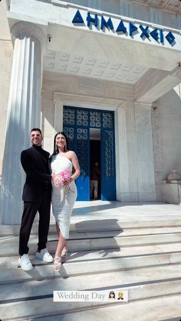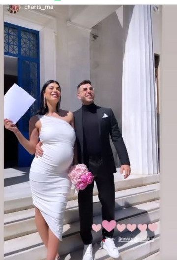 Το ζευγάρι παντρεύτηκε με πολιτικό γάμου σήμερα το πρωί, Πέμπτη (20/4). Η Νάσια για αυτή την ιδιαίτερη μέρα επέλεξε, ένα one-shoulder λευκό φόρεμα, με μήκος που φτάνει μέχρι το γόνατο, σκουλαρίκια και λευκά σανδάλια.