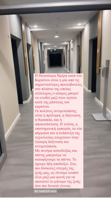 Με αφορμή τη σημερινή ημέρα, 4 Φεβρουαρίου, που αποτελεί την παγκόσμια ημέρα κατά του καρκίνου, η Αργυρώ, έστειλε το δικό της μήνυμα μέσα από τον προσωπικό της λογαριασμό στο Instagram. Σε story που δημοσίευσε αναφέρει: