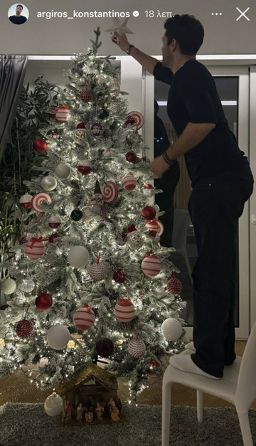 Την αποκάλυψη έκανε ο ίδιος ο τραγουδιστής κοινοποιώντας ένα Instagram story στο οποίο είχε ολοκληρώσει τον στολισμό του “χιονισμένου” Χριστουγεννιάτικου δέντρου του και τοποθετούσε το αστέρι στην κορυφή. Ο στολισμός κινήθηκε σε λευκούς και κόκκινους χρωματισμούς, όπως φαίνεται στη φωτογραφία που δημοσίευσε.