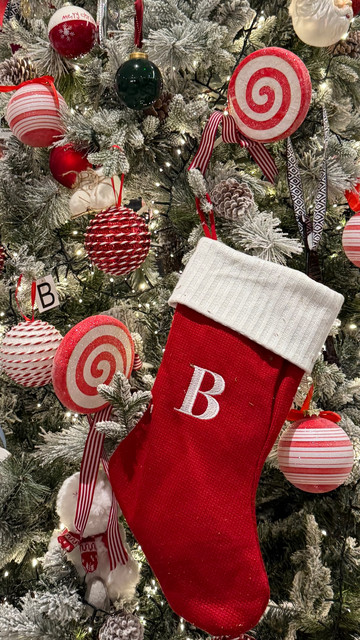 Την παράσταση κλέβει η κόκκινη χριστουγεννιάτικη κάλτσα με το αρχικό «Β», μια γλυκιά αναφορά στον μικρό τους γιο, που έκανε το φετινό στόλισμα ακόμη πιο ξεχωριστό.