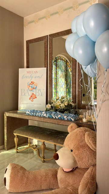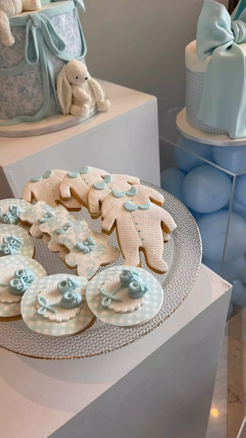 Στα stories που δημοσίευσε ο διακοσμητής Στέφανος Μεντενζής στο Instagram, φαίνεται ότι ο χώρος ήταν στολισμένος με μπαλόνια σε γαλάζιες, λευκές και μπεζ αποχρώσεις. Υπήρχαν πολλά γλυκά, τούρτες, ένας μεγάλος καφέ αρκούδος, ένας εντυπωσιακός μπλε φιόγκος, καθώς και δωράκια για τους καλεσμένους.