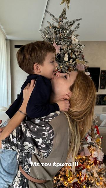 Παράλληλα, η παρουσιάστρια φωτογραφήθηκε με τον 4χρονο γιο της, Ανδρέα μπροστά από το χριστουγεννιάτικο δέντρο και μας έκανε να «λιώσουμε».