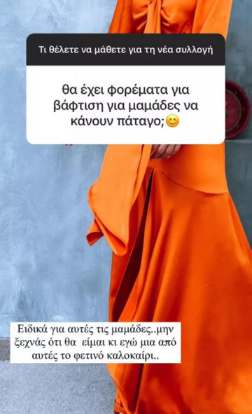 Συγκεκριμένα μια από τις followers της την ρώτησε για το αν θα έχει ρούχα για μαμάδες για καλοκαιρινές βαφτίσεις.