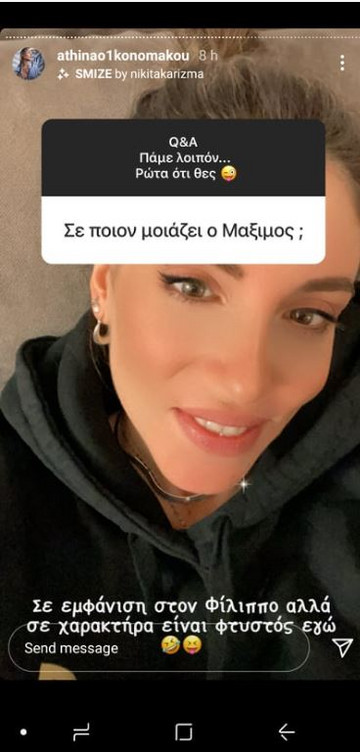 Έτσι σε πρόσφατο Q&A που έκανε, η Αθηνά αποκάλυψε σε ποιον μοιάζει ο γιος της Μάξιμος. Συγκεκριμένα όπως έγραψε, ο μικρούλης μοιάζει εμφανισιακά στον μπαμπά της ωστόσο στον χαρακτήρα είναι ίδιος η μαμά του.